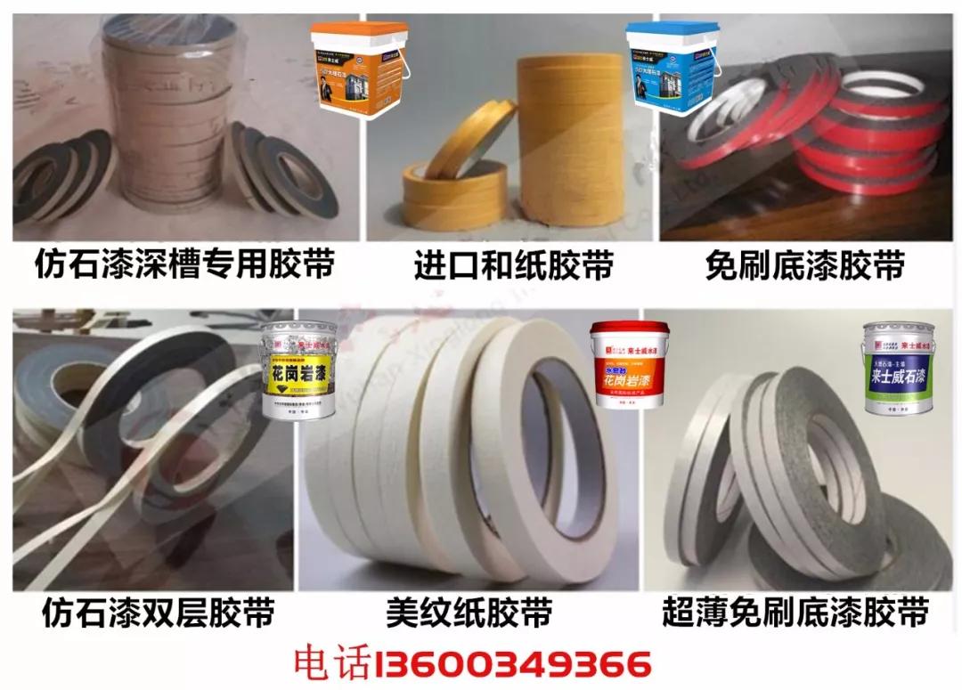 一、工具:主要工具批刀和刮板、仿石漆專用膠帶. 厚度是關鍵. 厚度有1毫米.3毫米.5毫米和超薄型的(如圖),寬窄自定,槽深槽淺主要是根據(jù)批刮膩子厚度而定。要配其它工具 專用水包砂仿石漆4.0口徑噴槍、小型手動攪拌機、攪拌桶、空壓機、砂紙等。