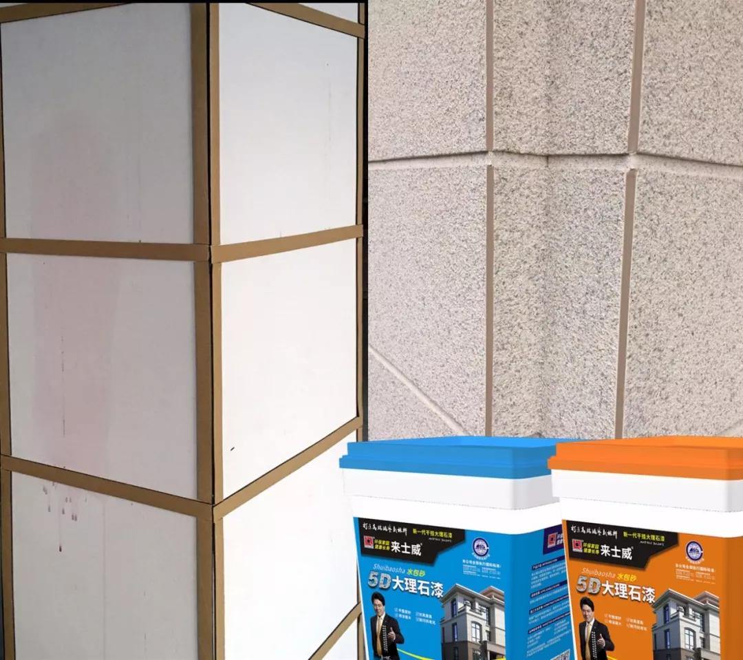 來士威5D仿石漆采用國際領先滲透科技,成膜后硬度高不怕切割,切割面過度自然毫無突兀之感;