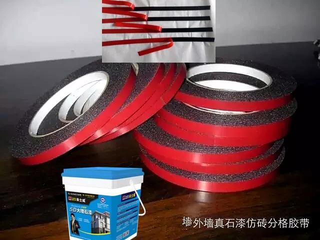 3. 彈線、定位分格:按照確定好的分格規(guī)格進行彈線分格,分格的時候需要將風格縫計算到位,并留出風格縫位置并劃線;以免規(guī)格不一致;橫向?qū)挾纫恢碌姆率?strong style="margin:0px;padding:0px;max-width:100%;box-sizing:border-box !important;word-wrap:break-word !important;">專用膠帶在分格線上粘貼。必須保證橫平(橫縫確保水平)、豎直 堅縫確保垂直,橫平寬一般用2厘米. 豎直寬一般用1厘米. 做出來東西美觀大方顯精神!特除情況寬窄自定;分格線應平直,每5米的平整度≦2毫米。 注意:粘貼仿石漆專用膠帶厚度,就是膩子厚度,槽深槽淺雙方協(xié)商確認好,槽的深度一般在1、3、5毫米不等。