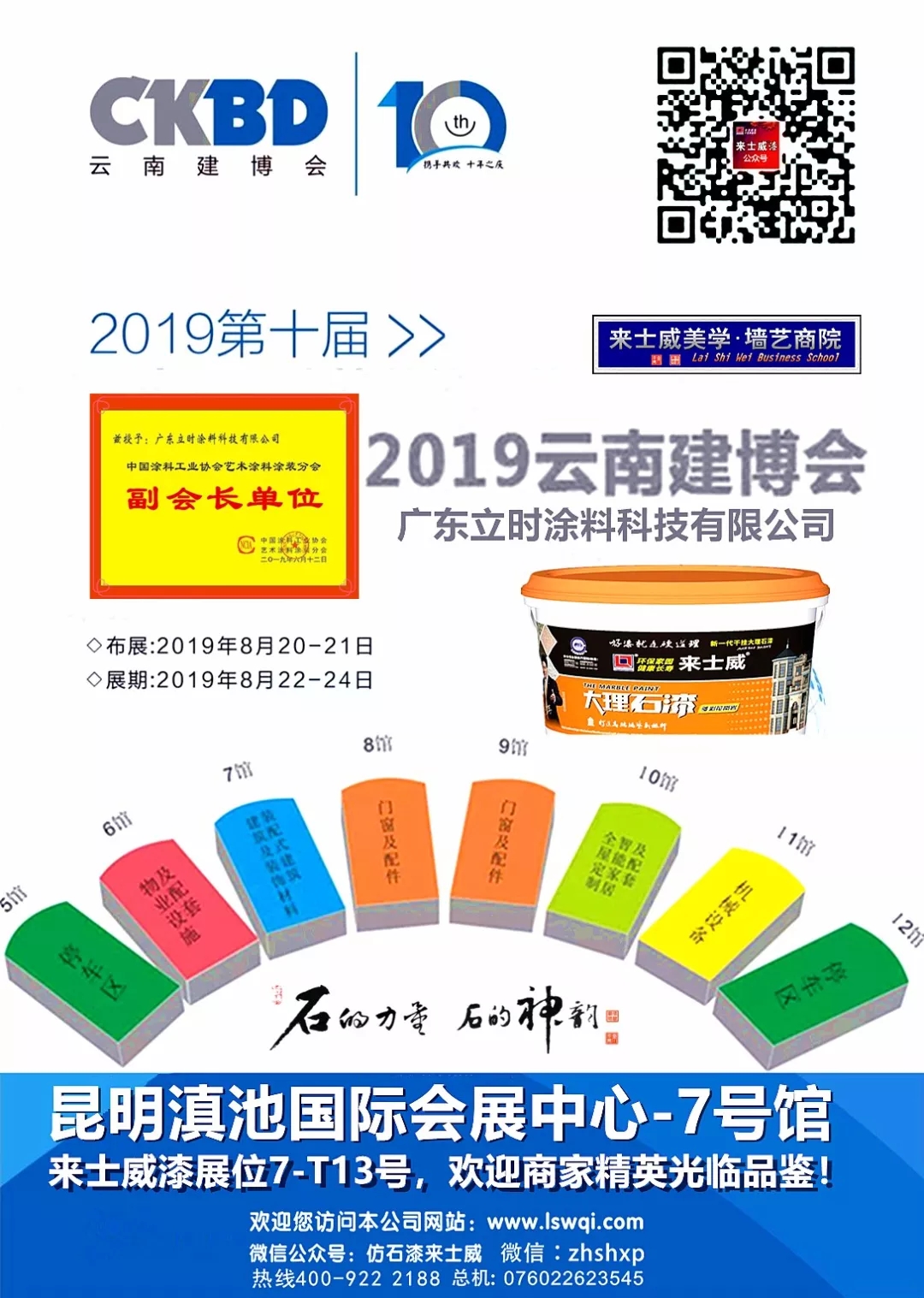 舉世矚目的第十屆云南國際建博會:將于2019年08月22--24日昆明滇池國際會展中心隆重召開;“高技術(shù)發(fā)展 質(zhì)量體系第一 性價(jià)比第一” 成為來士威漆冠軍企業(yè)大平臺主題!屆時(shí)市場主流風(fēng)向標(biāo):廣東立時(shí)涂料科技:展會明星企業(yè)來士威涂料將亮相云南國際會議展覽中心7號館,展位7-T13號,敬請光臨品鑒來士威!